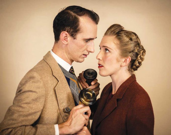 The twist is that the play is on an old-fashioned radio soundstage: WBFR in Manhattan. The production has live foley tables, live instruments and even a touch of theatrical magic. Foley is the art of creating sound effects, such as banging coconut shells together to mimic horse hooves. Before the advent of modern sound systems, it was present at every live performance. It’s always a pleasure to experience good foley; it would be worth it if this production offered nothing else.