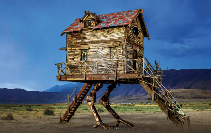 Behind a rickety fence gilded with human skulls, she lives in a ramshackle, ever-spinning cottage propped up on enormous arching chicken legs. She wields immense power over animals, the elements, and time itself, flying through the air with the aid of a giant mortar and pestle.