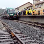 It’s a few minutes after noon on Friday, March 4, and a large group of people, clutching colorful umbrellas,...